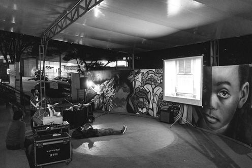 enquanto os artistas Leandro Araujo e Daniel Nunes percorrem a cidade com um gravador, os membros do movimento hip-hop que se reúnem sob um viaduto arruinado do centro da cidade e religiosos compartilham o mesmo espaço urbano em uma rua boêmia. a paisagem sonora das cidades é armazenada em um banco de áudio que se torna a fonte de imagens poderosas geradas ao vivo na apresentação.